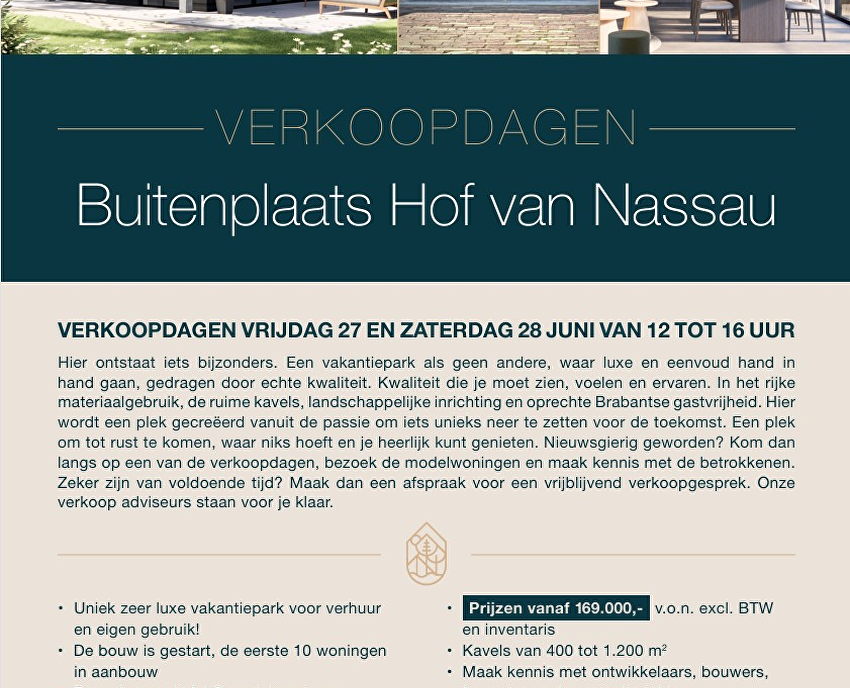 Wegens ongekend succes van de eerste verkoopdagen op 9 en 10 mei waar meer dan 100 geïnteresseerden aanwezig waren en naar aanleiding waarvan reeds meerdere villa's zijn verkocht, is een nieuw verkoopweekend gepland op 27 en 28 juni van 12.00 tot 16.00 .